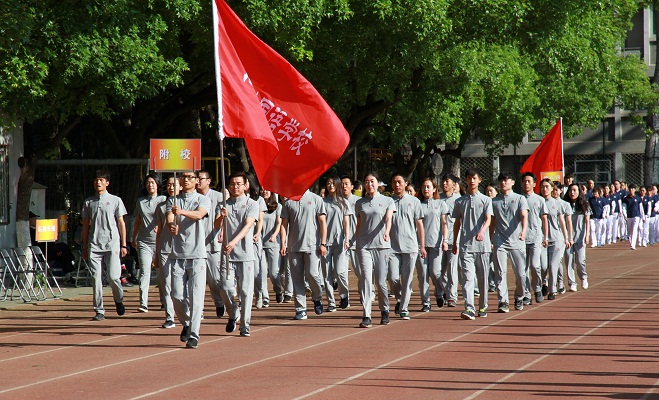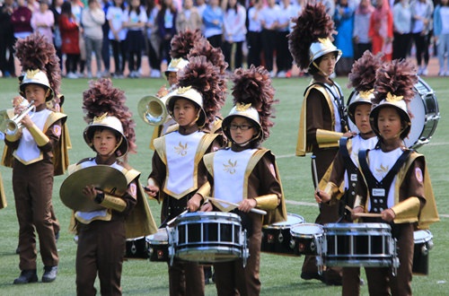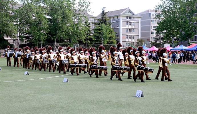 北外附校由39名教职工组成方队,迈着整齐矫健的步伐,喊着嘹亮的口号,斗志昂扬地走过运动会的主席台,校“sunshine艺术团”的中小学生精彩的行进管乐表演也获得了阵阵喝彩,展示了附校师生青春、奋进、昂扬的精神风貌。“外语特长,文理兼优;全人教育,全面发展;振兴附校,再创辉煌!”激昂的口号喊出了附校在改革发展中的执着追求,也是附校全体教职工一直为之努力奋斗的目标。