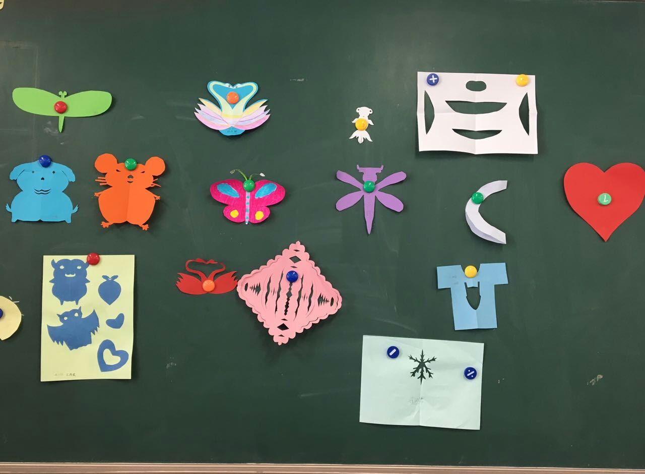为进一步提高学生对学习数学的兴趣,增强孩子们的审美意识,培养学生良好的动手操作能力,周末的特色作业让学生们动手剪裁了美丽的对称图形,4月13日上午,小学三年级全体学生举行了轴对称图形的特色作业展览活动。