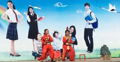 间操时间,三年级小同学奉上精心准备的英语剧《花木兰》。新颖别致的英文豫剧唱腔显得独具特色,小演员们娴熟默契的配合将中国传统故事演绎得十分传神。随后外教老师带领大家跳唱韵律十足的英语舞蹈。