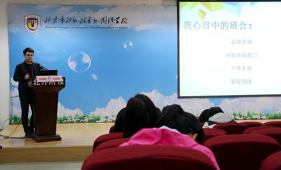 在观摩课上,我校初中初二(3)班班主任潘铎轩老师以“友谊的力量”为题,现场执教了一堂活动式主题班会课,通过活动、体验、感悟、分享的方式,引导学生体会什么是真正的友谊、学会珍惜友谊,班会课内容丰富,主题鲜明,形式多样,氛围活跃,受到观摩领导和培训班学员代表一致好评。权福苗和张群智两位专家也对观摩课进行了现场点评,充分肯定了现场观摩课的效果,并对北外附校的组织工给予高度评价.。下午,参会班主任老师在第一阶梯教室观看了两场班会实录:十九中学特色主题班会《清明节·弘扬中国传统文化》以及清华附中尹老师所带来的《你好!未来的自己》生涯教育主题班会。一个深刻有趣的引入;一则经典故事的分享;一次身边经历的模拟;一番辨别是非的讨论;一份内心感悟的提炼;一项付诸行动的落实。专家的引领为与会老师们提供了一个新的视野、新的角度、新的思路。