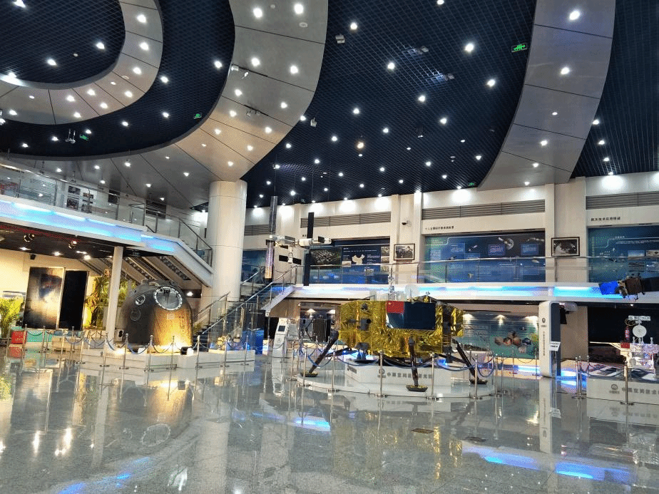 我们首先参观的是航天城的展示厅,里面有很多卫星,有专门的讲解员给我们进行讲解。