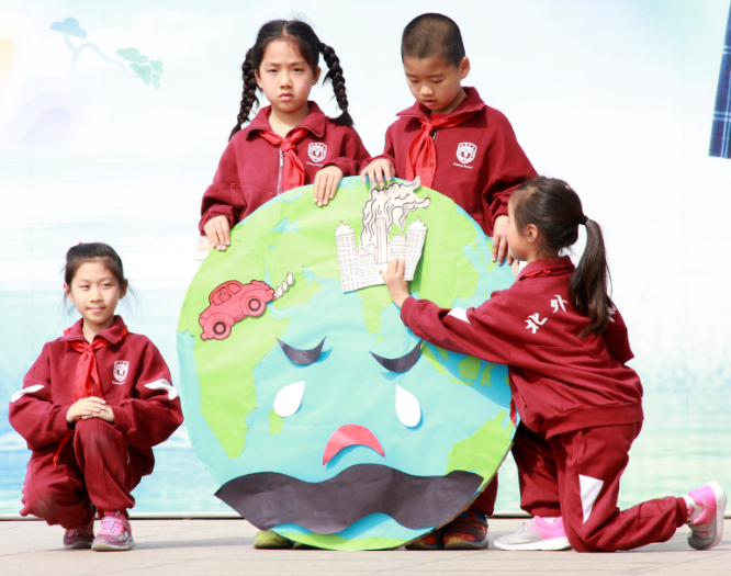 同学们讲述了世界地球日的诞生。讲到曾经美丽壮观的地球母亲如今却被阴霾笼罩,终日呻吟哭泣。同学们讲述的同时,用地球模型形象地展示了地球母亲从微笑到哭泣的过程。同时,他们倡导同学们从日常生活中的点滴小事做起,从我做起,把每天都当做地球日,让我们的天空更加蔚蓝,大地更加苍翠,空气更加清新,让我们的校园更加美丽。