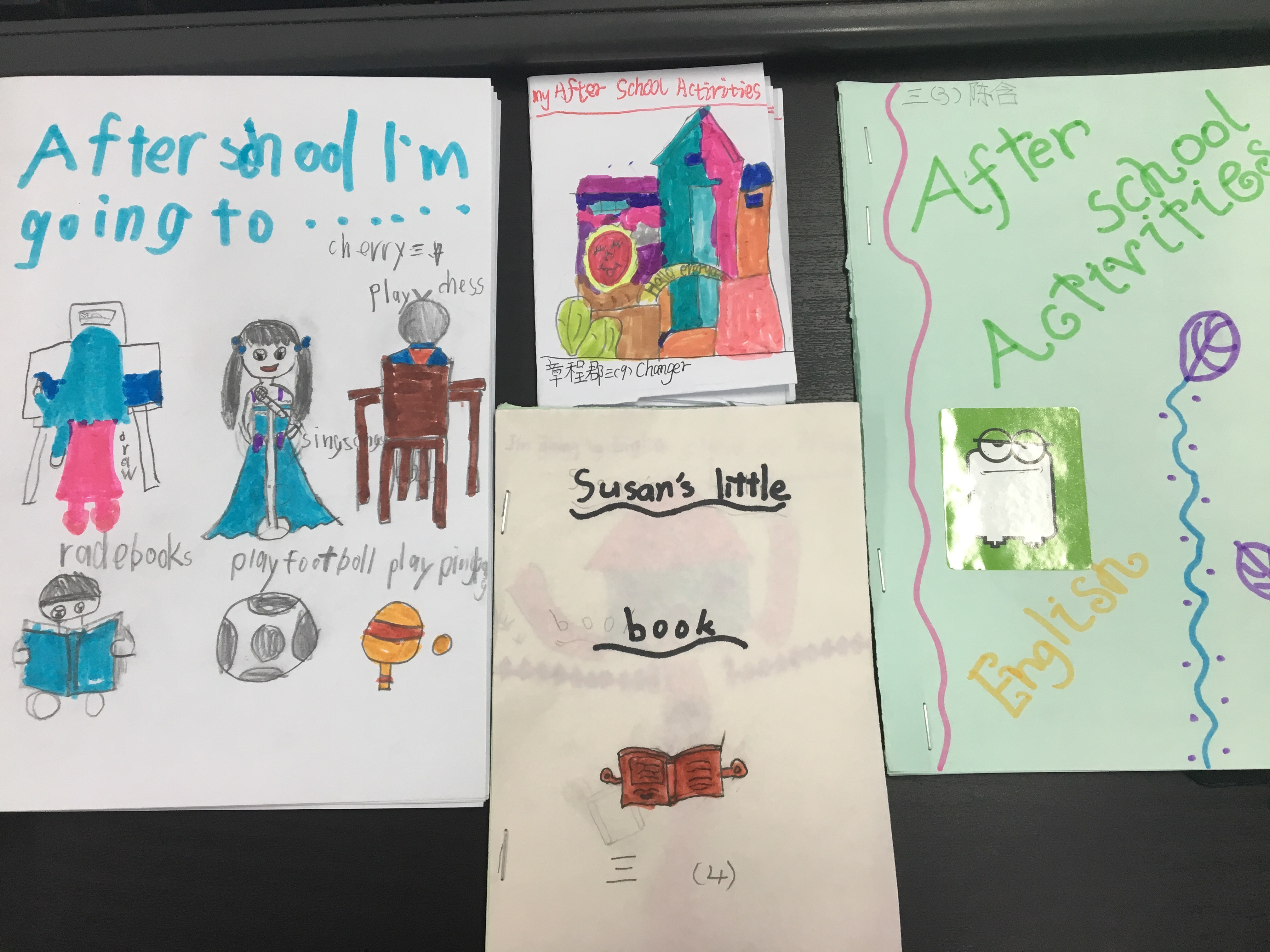 英语绘本具有包装精美、经典完整、语境真实、复现强调、思维发散等特点。 无论在小学低段还是高段,精美的包装和完整的故事都能吸引孩子的注意力。每一个绘本故事都有其深远的主旨,孩子们在阅读的时候,不仅受到了语言的熏陶,也加深了他们对周围世界的了解和认识。同时,绘本的语言具有形象性、简洁性和重复性的特点。这些特点特别适合小学生学习英语,形象性的特点帮助学生更易于理解和使用语句;简洁性,既保证了语句表达的准确性也保证了绘本中语句的简单;重复性,使学生更容易的掌握英语语句和发音特点,并且由于是在故事中的语句重复,不会造成学生的阅读疲劳,反而会让他们产生故事很简单易懂,更有兴趣读下去的冲动。与此同时,绘本可以透过文字和图片帮助学生发散思维,帮助学生对故事展开丰富的联想,绘本故事还能帮助学生锻炼逻辑思维能力,推理、预测能力。三年级同学们接触绘本已经很久了,先后举行过“绘本朗读大赛”、“绘本故事表演”、“好绘本我推荐”、课前持续默读等系列活动。这一次英语组老师组织了“英文绘本我展示”活动,学生们绘本创作的积极性非常高,孩子们不仅英文能力有所提高、阅读量加大,就连绘画、版面设计等能力都让人刮目相看。真正做到了在真实语境中的语言运用。