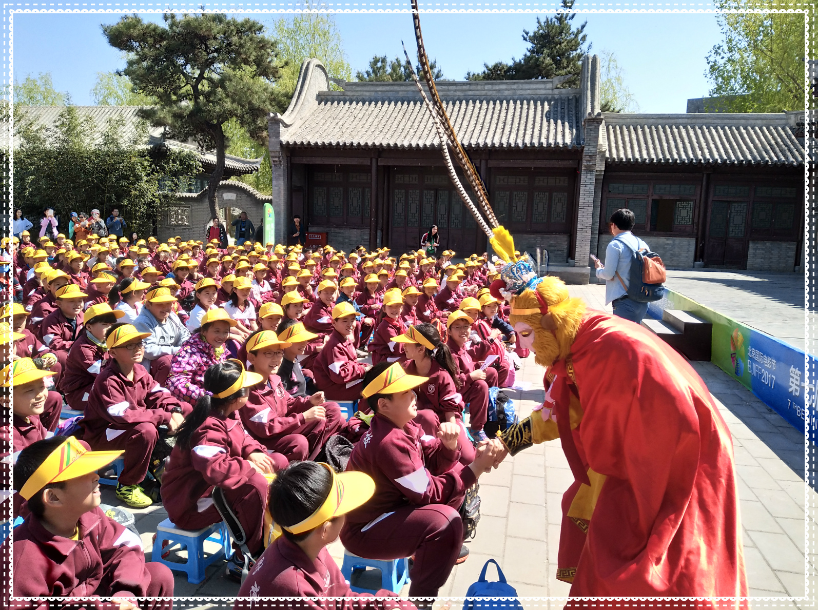 “走走,走走走,我们小手拉小手,一同去郊游……”4月12日上午,伴随着阵阵欢声笑语,小学四年级的师生们一起来到怀柔影视城进行春季社会实践活动。