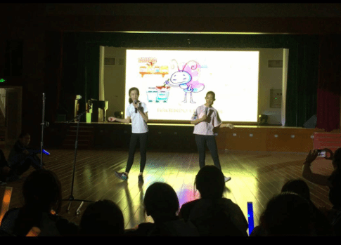 时置北外附校第14节外语节,4月13日下午,初中复语组师生在国瑞厅举办了本届外语节系列活动之“小语种歌会”,让所有学过复语和未学过复语的师生都有机会一展风采。本次活动共有13名师生演唱了德、法、西、日、韩五个语种的歌曲,从报名到表演短短一周的时间里,师生们积极准备,勤奋练习。值得一提的是,参加演唱的同学并不全都演唱自己所学语种,也有部分同学选择选修课所学的外语,或自己感兴趣的语言进行演唱,充分体现了学生们挑战自我的勇气。活动现场气氛温馨愉悦,鼓掌声和欢呼声此起彼伏。