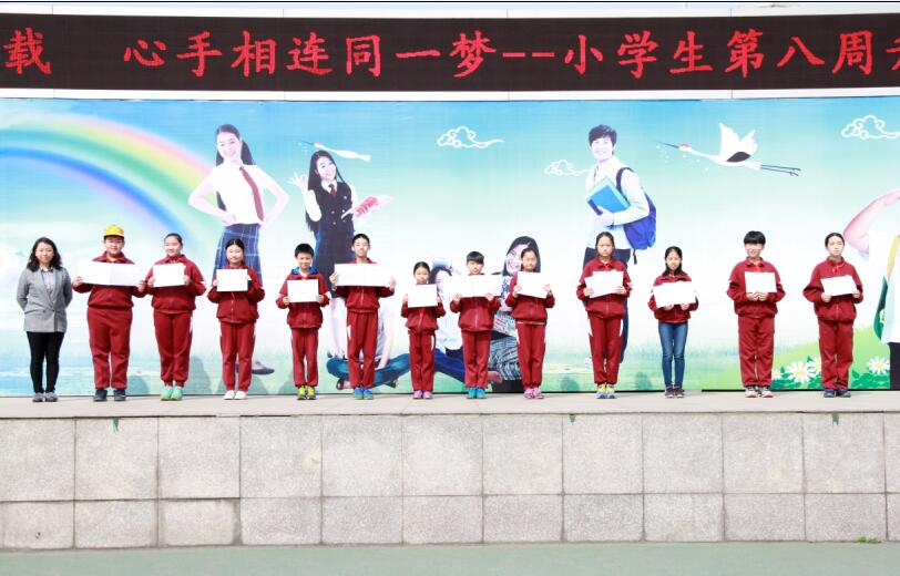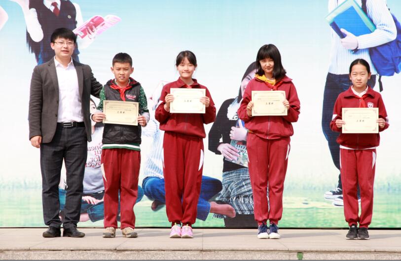 最后,大队辅导员席老师公布了获奖名单,获奖学生代表上台领奖。校领导孟校长、