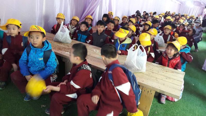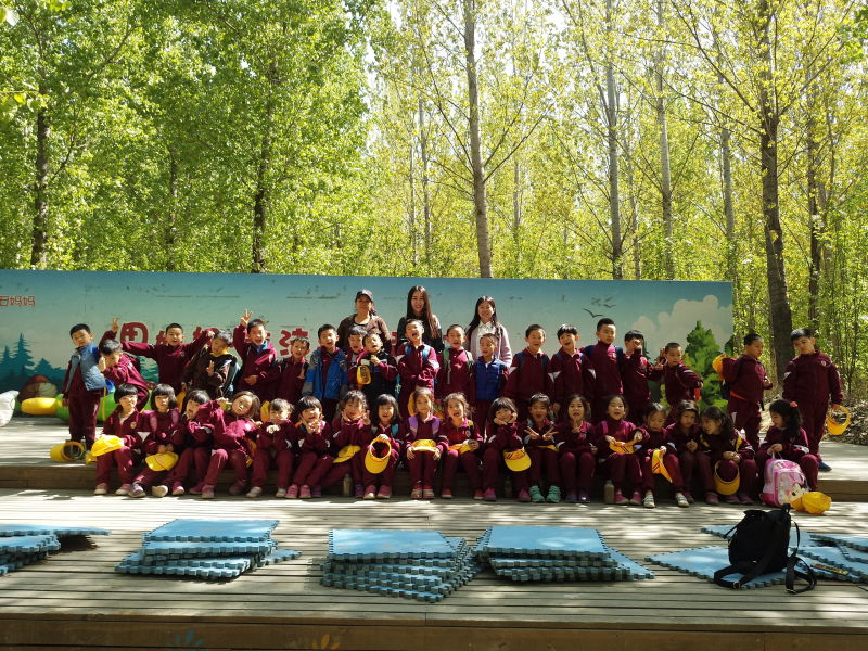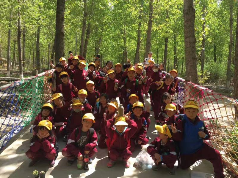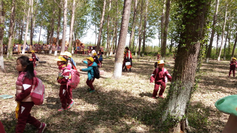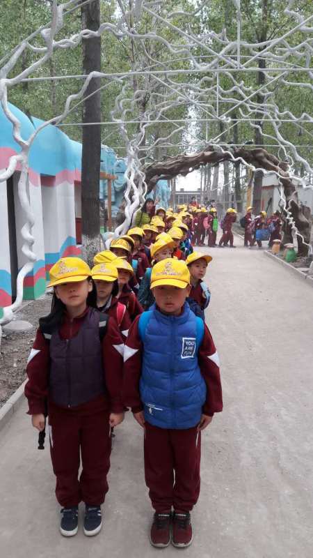 8:10从学校出发,同学们戴着小黄帽,穿着整齐的校服,乘坐大巴车,来到“田妈妈蘑法森林”。