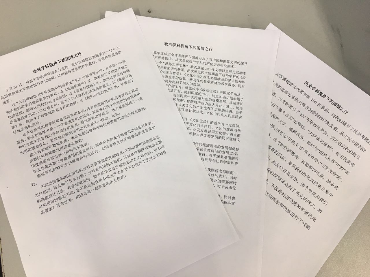 为了更好地开拓教师的视野,激发教学灵感,扩展教学的具体素材以增加教学深度,根据高中文综政、史、地学科的特点,在学校领导的大力支持下, 3月31日高中文综组全体教师走进了国家博物馆进行了一次校外教研活动。