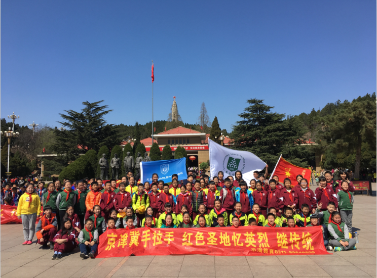 4月1日早上,结束了对谈固小学的“访问”之后,我校与谈固小学师生代表共赴革命圣地——西柏坡,举行了“忆英烈 继传统”主题教育活动。全体少先队员站立在英雄纪念碑下,缅怀那段逝去的峥嵘岁月,寄托我们的哀思,激扬我们的斗志,全体少先队员面向英雄纪念碑默哀一分钟。第二项由少先队员向英雄纪念碑敬献鲜花,朵朵鲜花寄托着全体少先队员们深深的哀思和无限的敬仰。接下来,接下来由北外附校学生代表和谈固小学学生代表为大家带来诗朗诵—《献给烈士的诗》,在铿锵有力,慷慨激昂的朗诵之后,全体齐唱《中国少年先锋队队歌》。最后在纪念碑前,以红领巾的名义立下庄严的誓言。随后学生们参观了西柏坡纪念馆及毛泽东、朱德等伟人故居,了解了在西柏坡发生的革命历史,结束了这段难忘的红色之旅。