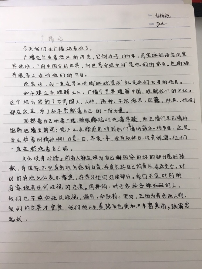中国国际广播电台是中国唯一向全世界广播的国家电台,是全球使用语种最多的国际传播机构,创办早、语种多,具有丰富而完善的广播传媒网络,是中国与世界信息交流的重要纽带和桥梁。而我校作为一所设有法语、德语、西班牙语、日语等语种的复语学校,学校在同时教授两种语言的同时,致力于扩宽学生的视野,培养孩子从小关注国际信息的意识。通过此次参观,学生们增长了知识、开阔了眼界,了解外语学习的最终目的是为灵活运用而服务的,学生们学习法语不仅可以打开法语国家文化的窗口,更可以打开一扇通向世界的窗口,在了解世界的同时从自己的角度表达对世界的看法。