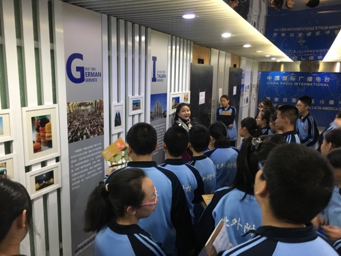 在法语部国内社交媒体编辑赵芳薇老师的带领下,我校法英复语班师生一起参观国际广播电台的台史馆,了解广播电台的65个不同语种部门,回顾电台于抗日烽火的硝烟中诞生直到成为今天世界知名广播电台的光辉历程。中国国际广播事业日新月异的发展折射出国家实力的巨大变化,让各位参观的师生深受鼓舞。