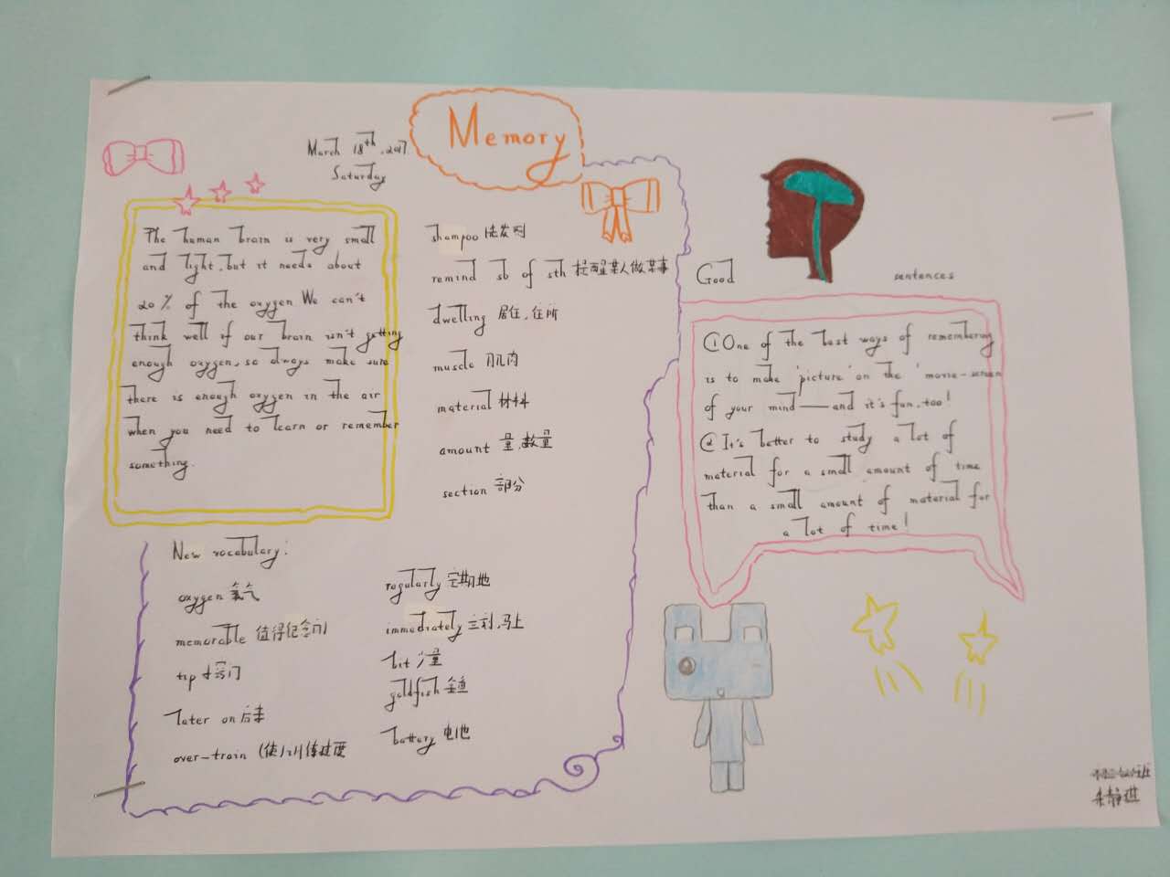 年级英语老师们的指导下,同学们结合所学知识制作出了第九单元的思维导图。