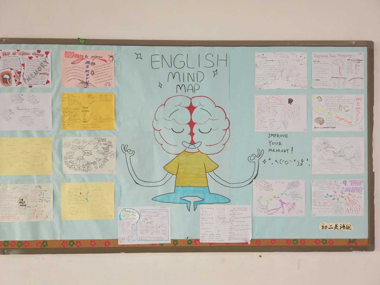 画面精美的作品在初二年级英语组的板报上展示,吸引不少同学驻足观看。