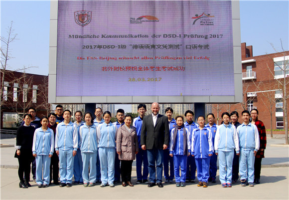 本次口语考试由德国国外学校教育司北方地区督导Wolfrum 先生、联邦项目专家Markus 先生以及我校德语教师担任考官,我校学生经过考前的认真准备,积极应对,表现优异,通过了此次考试。