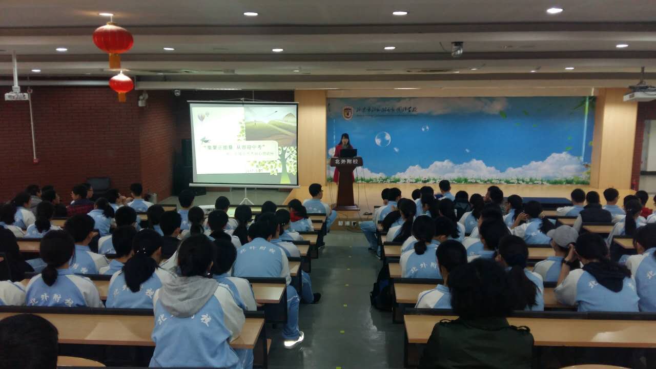 3月27日下午,初三年级在学校二层阶梯教室开展了“集聚正能量从容迎中考”主题中考考前心理辅导讲座。讲座由学校专职心理教师、国家二级心理咨询师李丹主讲,初三年级班主任及全体学生参加了本次讲座。活动由初三年级组长李保申老师主持。