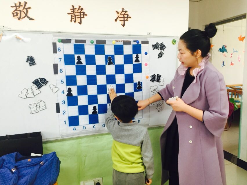 在体验中上,老师一边让孩子们学习如何下棋,一边鼓励孩子们积极探索,大胆实践,“小选手们”真是临阵不乱,现学现卖各展才能,不少人颇有“高手”风范,整盘棋局十分精彩,孩子们的棋艺表现和下棋时的专注精神得到了老师的点赞。