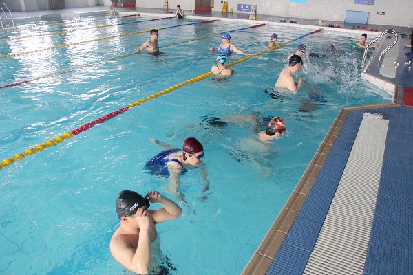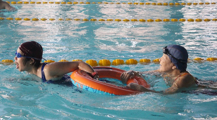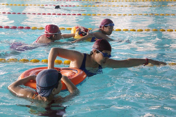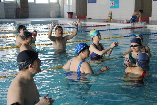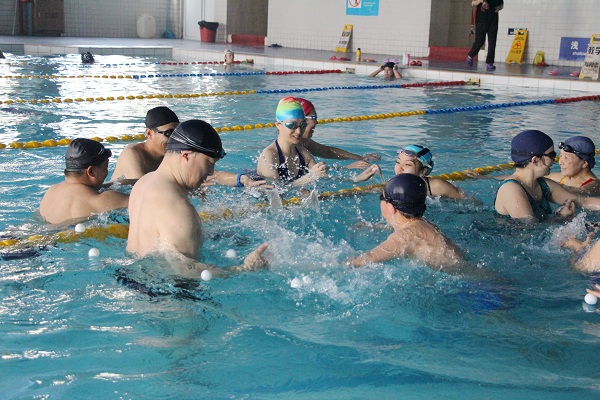 碧波池里浪花翻腾,游泳馆里欢笑多多。3月29日中午,我校首届教职工趣味游泳赛在北区游泳馆举行。本次活动由工会游泳协会负责人李骏老师精心策划组织,部分教职工游泳爱好者在游泳馆上演了一场精彩纷呈的水上角逐战。比赛共分为三个项目,分别是水上抓乒乓球,水下捞硬币,救生游泳赛。