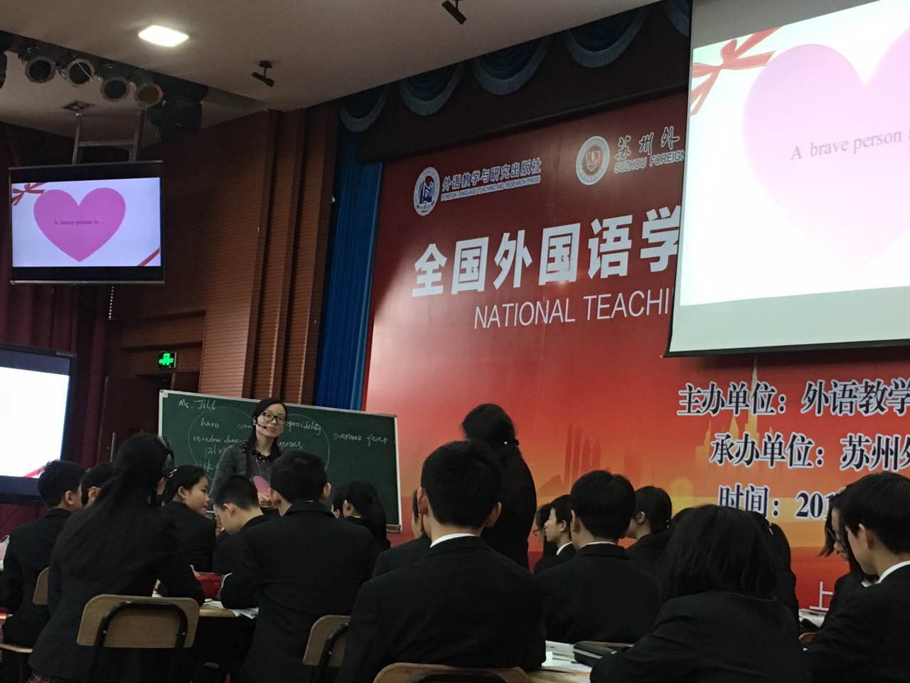 此次教学研讨会是由外研社主办,由苏州外国语中学承办,研讨会邀请了包括我校在内的七所全国顶级外国语学校精英教师进行同课异构。我校刘娟老师代表我校进行了精彩的示范课展示获得国内知名专家及所有参会教师的一致好评。
