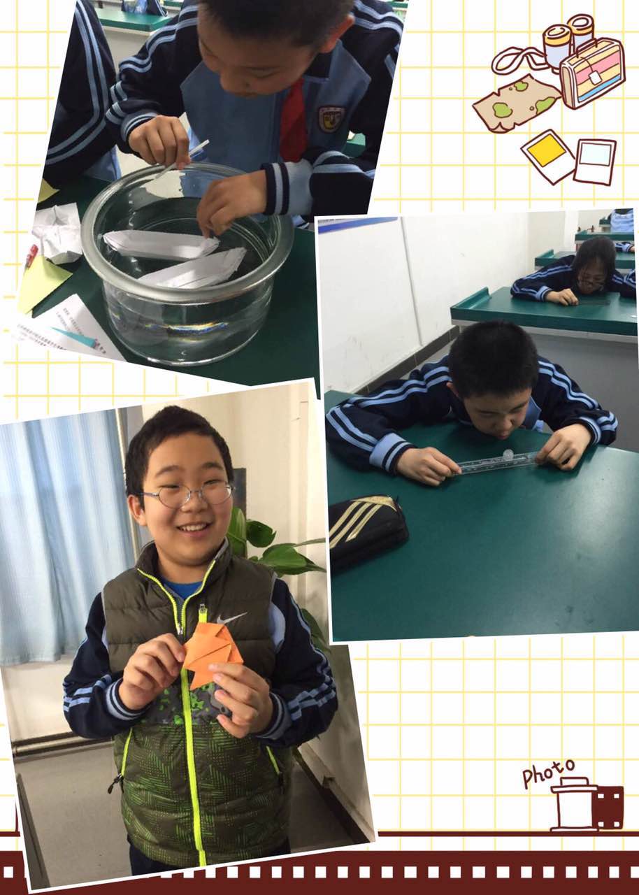 本学期主要以力学原理的渗透为主,每节课在最后十分钟增加了比赛和展示环节。在“吹硬币”环节中,学生清楚了并不是力气越大越好,从而对气流有了更好的认识;在“纸飞机”模型赛中,大家经过不断的调试最终顺利通过了考核,对飞机的结构对稳定性的影响有了新的了解;在“陀螺”的制作和展示中,大家深刻理解了重心对稳定性的影响,并且探究了不同形状的陀螺在旋转时的效果;如何让自己折好的青蛙跳起来?两条并行的小船在气流的作用下为什么会相撞?……看看孩子们活动时的情景吧,希望你也喜欢上物理,爱上科学!