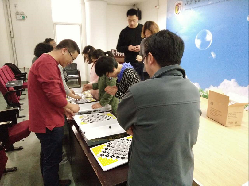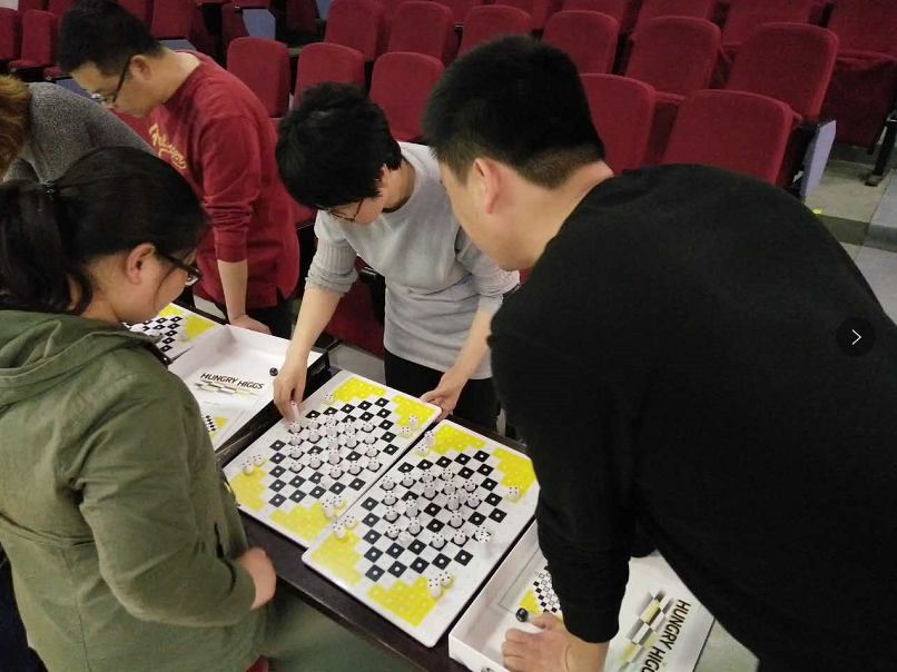 在培训过程中,安老师给组内老师们留出实践操作的时间,老师们积极热情,不断探索和感受重力棋带给大家博弈论,不仅有对抗竞争,更多的强调合作共赢的博弈。通过概率,由感性到理性,进而上升到从科学、理性的角度来思考,基于计算快速判断出最佳策略,体现了非常有价值的教育过程。相信通过老师的学与悟激发学生的潜能,在今后的比赛中取得好成绩!