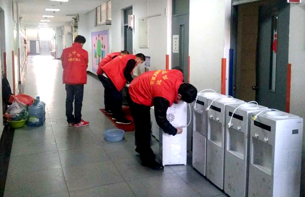 娃哈哈公司的专业人员在清洗饮水机清洗