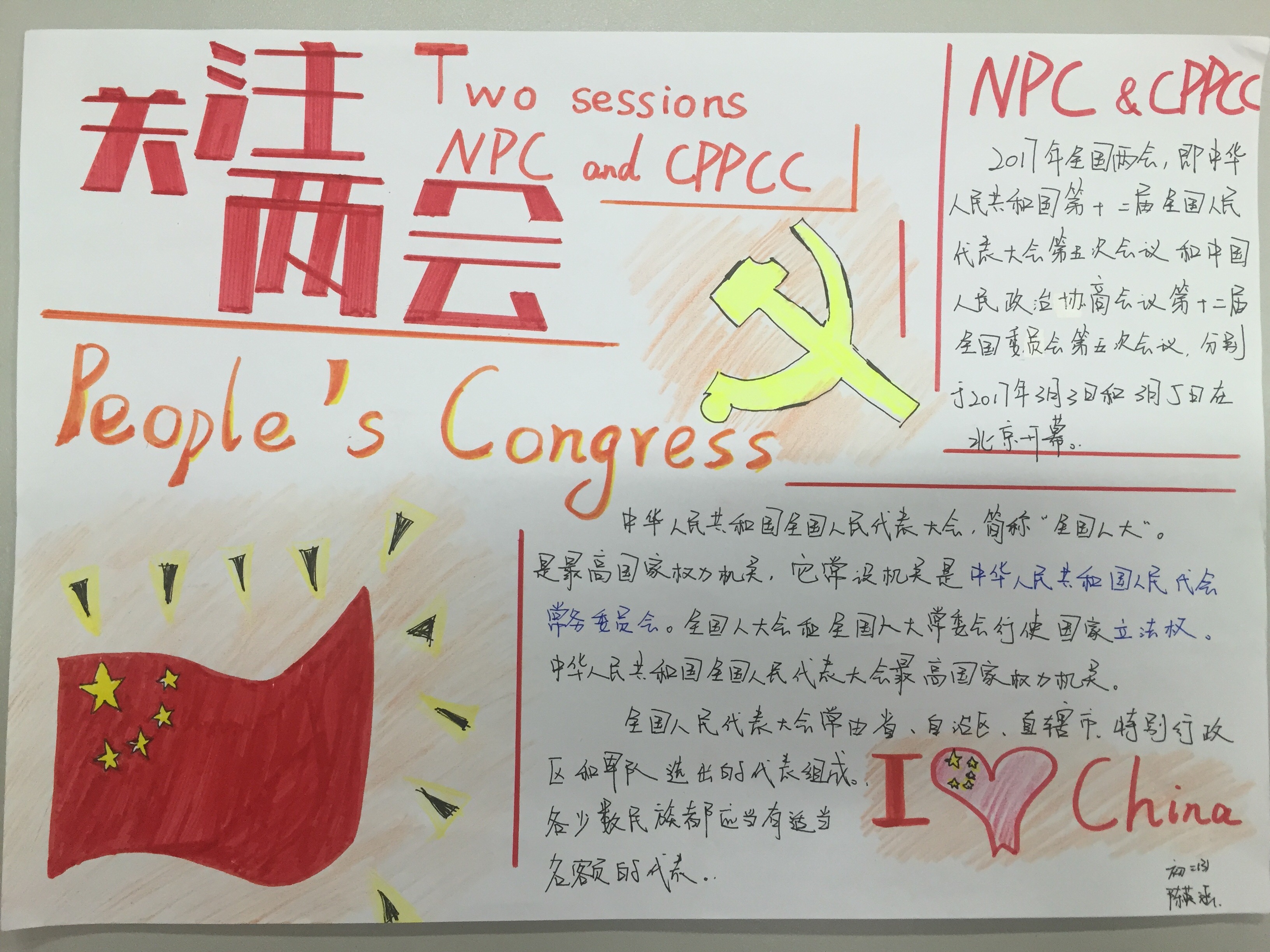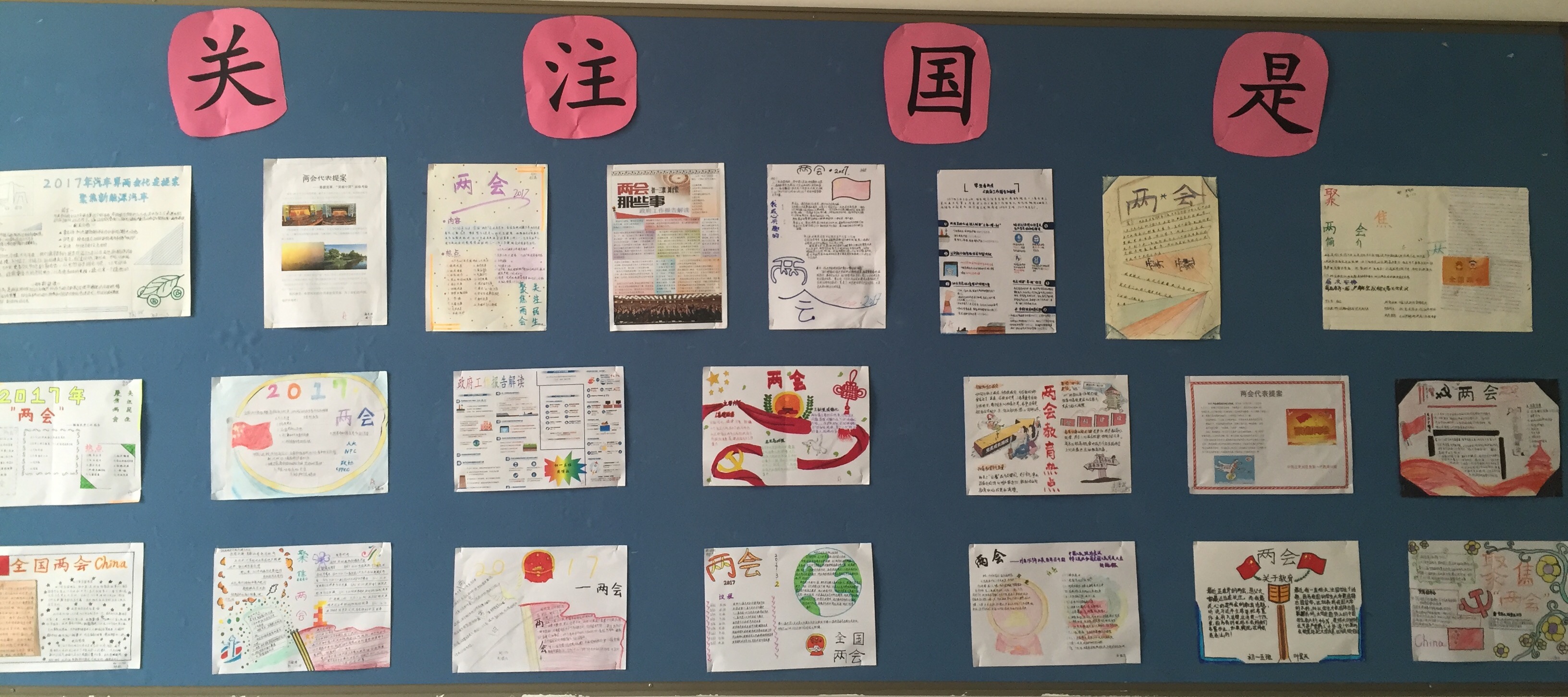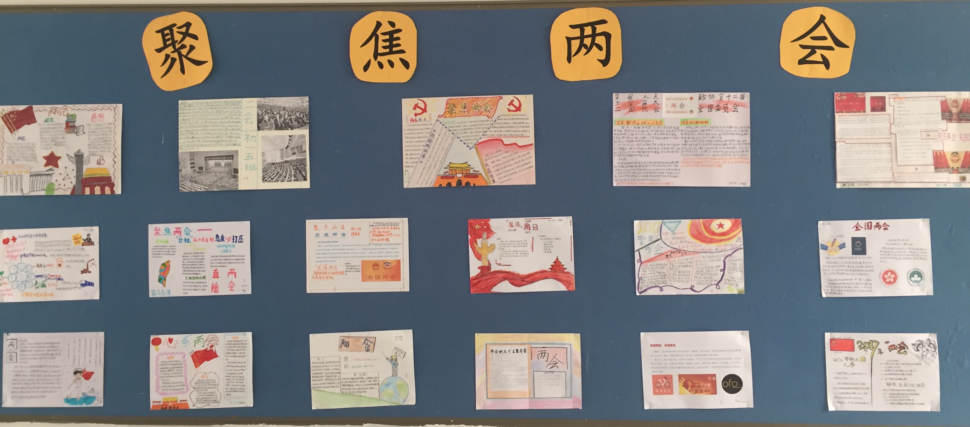 为加强中学生的国情教育,借着“两会”东风,政治备课组在本周开展了“聚焦两会”主题手抄报活动。