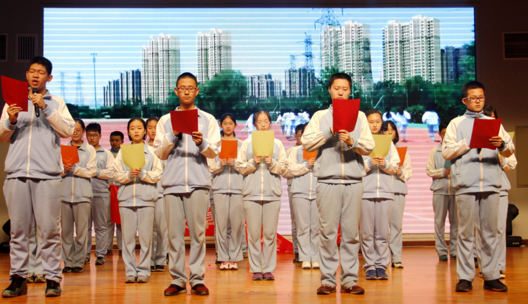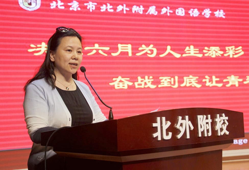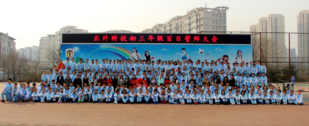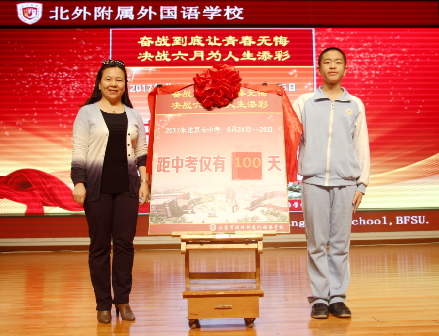 2017年3月16日下午,我校在国瑞厅举行了以“决战六月,为人生添彩”为主题的初三年级中考冲刺百日誓师活动。北外附校副校长、初中校长张继军,北外附校校长助理、初中副校长杨磊、初中副校长许祥出席活动,大会由年级部主任李保申主持,2017届全体师生参加。