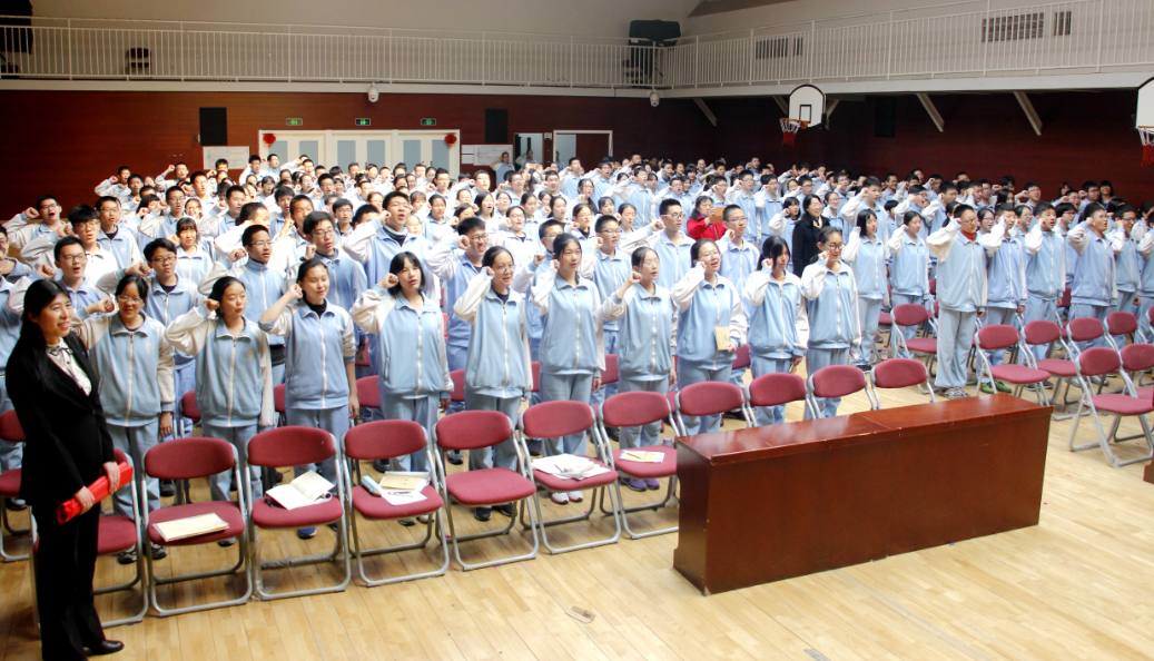 坚持把德育工作放在教育工作的首位,是我校教育教学的一贯宗旨。百日誓师是作为对全体学生实施德育的重要载体,学校十分重视。此次活动是在学校各级校领导指导下,由初三年级组师生精心策划组织的。在年级的周密安排下,整个活动内容丰富,节奏分明,高潮迭起,取得了良好的效果。百日誓师的流程包括:全场倒计时、奏唱国歌,揭牌仪式,校长寄语,教师代表发言,班级宣誓等,每一项活动都蕴藏教育的价值和意义。
