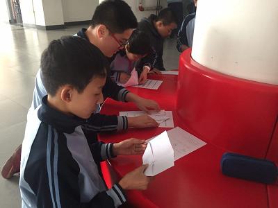 初二(4)班:李晓萌、齐梓宇 他们将代表学校参加“海淀区”纸飞机比赛。