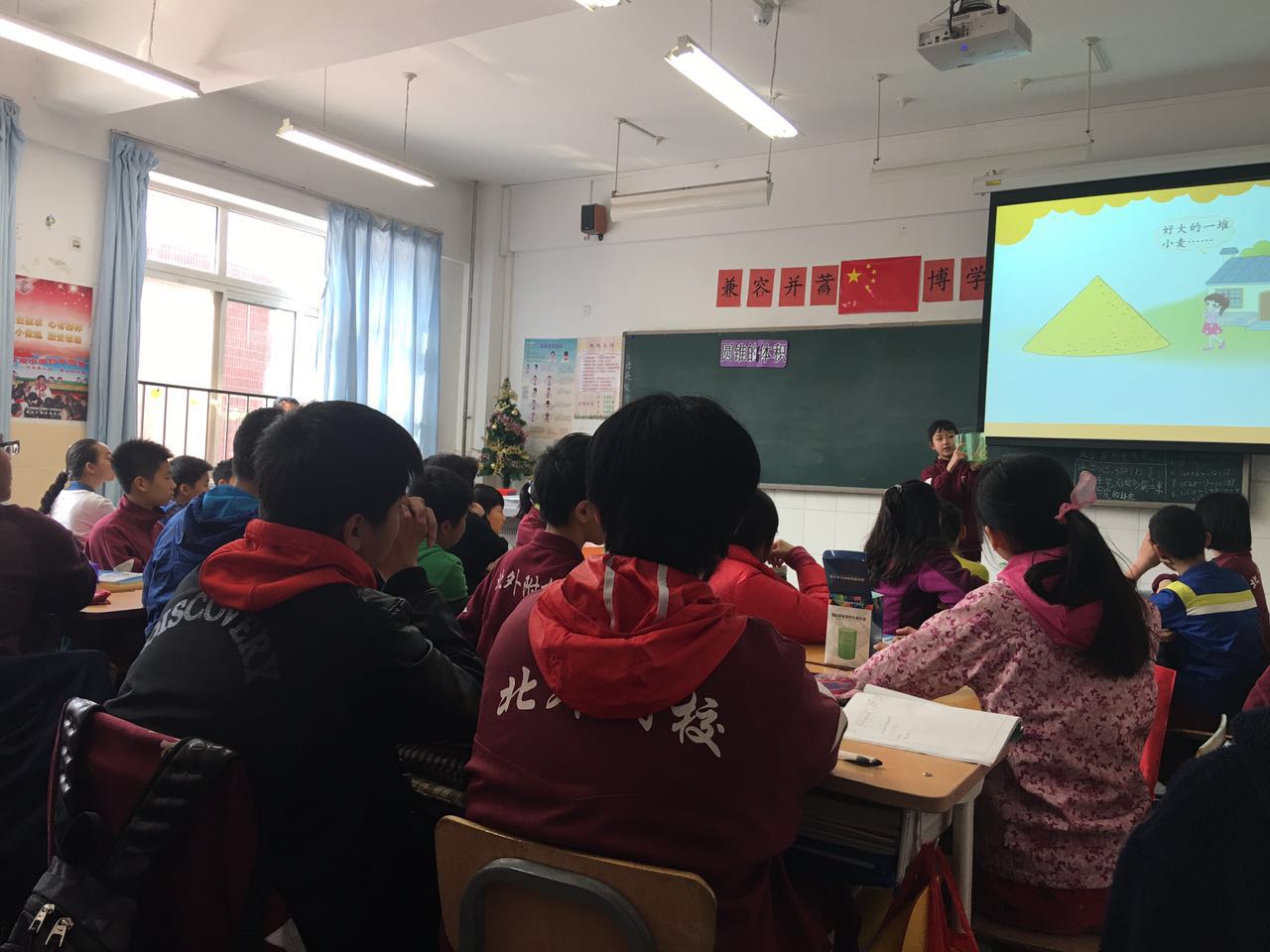 3月15日,谈固小学多名教师走进小学六年级数学课堂,冯峥老师讲授了《圆锥的体积》一课。