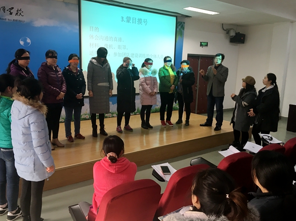 张老师通过“以始为终”的数字游戏让老师们感受掌握心理规律对积极人生的重要作用,通过“鼓掌游戏”、“蒙目摸号”、猜谜游戏、“几顶红帽子”、“急速30秒”等活动引发大家思考,生动深刻地向老师们介绍了应对压力的智慧心态、创造师生“一体感”对教育引导起到的积极作用、积极赞美对和谐师生“一体感”营造的重要性、教师如何自我减压、怎样激发学生的内在动力、如何维系师生关系及家校一体等内容。现场老师们都被深深带入活动中,时而欢笑、时而紧张、时而提问、时而沉思,不仅在活动中收获了心理学知识、得到了心态调整,更是体验到疏压放松,活动在老师们热烈的掌声中结束。