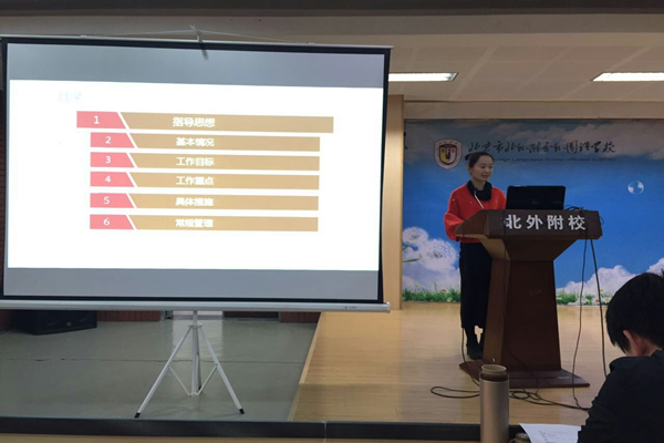 教研组长解读计划后,林卫民校长进行总结性发言。充分肯定教研组长制定的计划实效性强,大家正走在正确的办学路上。鼓励大家认真工作,北外附校的明天会更好!