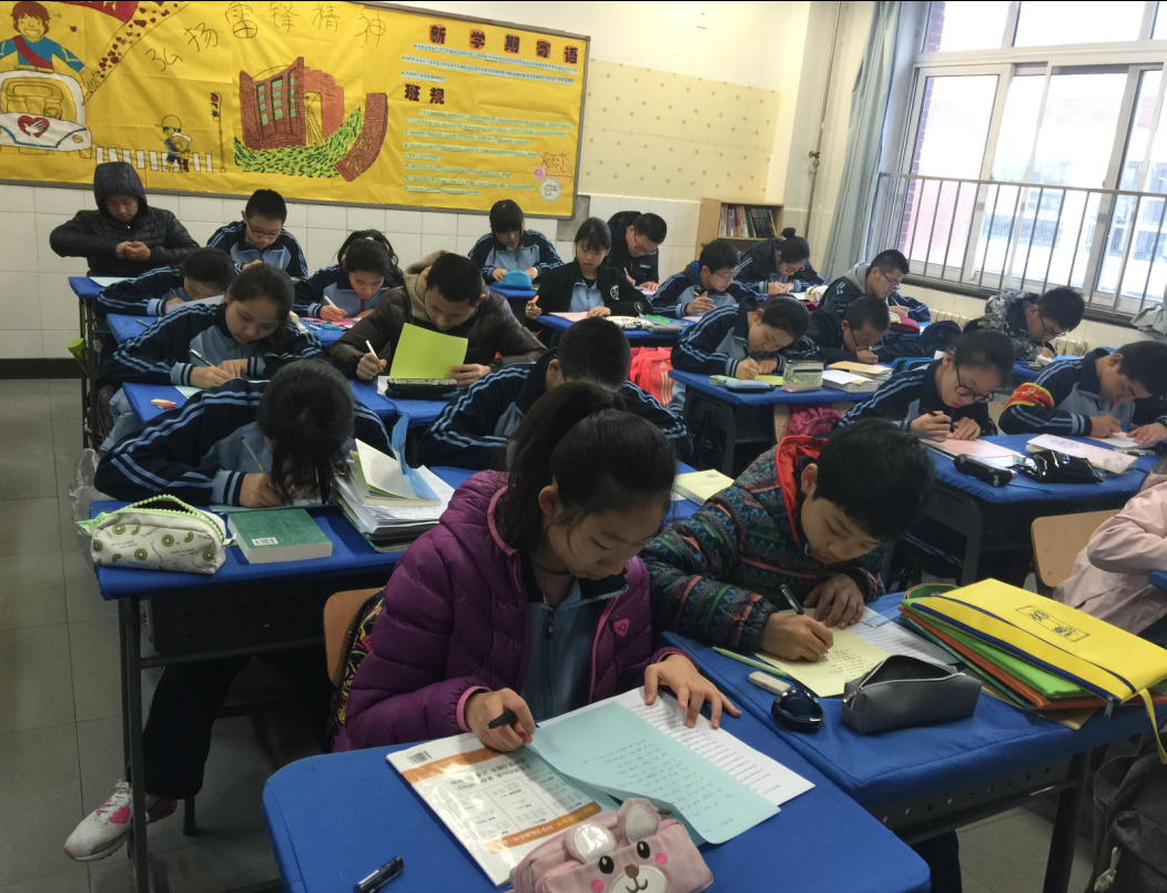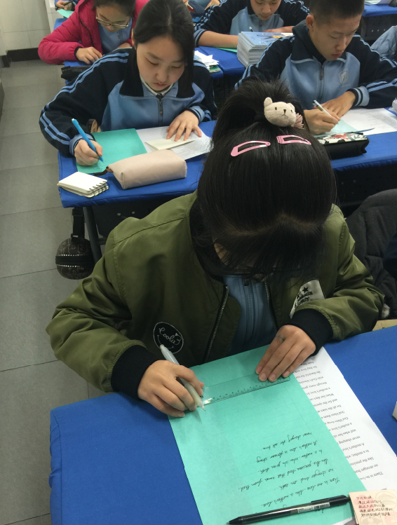 在英语老师的指导鼓励下,各班学生都认真地书写,展示了扎实的英语书写功底:字