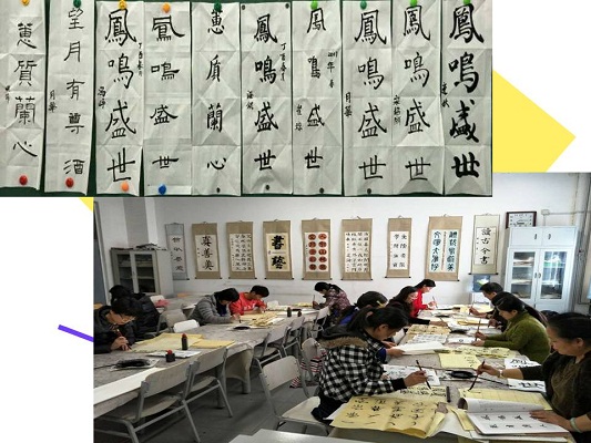 凤鸣和谐盛世,龙舞丽日乾坤。书画协会在黄海锟老师的组织教学下,喜迎佳节,一同感受传统文化的魅力。国画课信手挥洒,书法课屏气凝神。“凤鸣盛世”书法创作为这特殊的节日献上了一份特别的祝福。