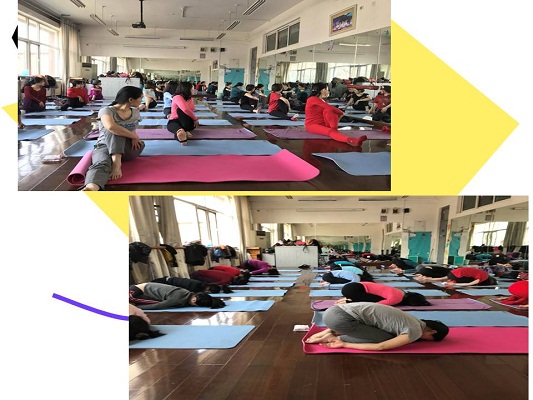 我校承办的海淀区教职工瑜伽俱乐部组织“关爱女性身心健康”的特色瑜伽课程,来自育鹰小学、清河中学等周边学校的女领导、女教师在孟倩老师的示范教学中放松身心,舒缓压力,恢复活力,在缓慢平和的音乐中修炼教育者的优雅气质。