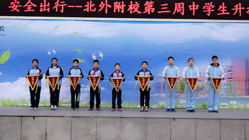 初中副校长许祥作“珍惜生命,安全出行”的主题发言,他先强调了生活中处处都可能存在安全隐患,并向同学们提出了五大项要求:两会期间加强空中安全、注意校园安全防范、注意交通安全防范、注意消防安全防范和注意自然灾害安全防范。最后,他希望同学们能注意身边的安全隐患并及时整改,为自己和他人创造一个更安全的环境。副校长、副书记高雁鸣北外附校2016年记者团最佳写手颁奖。仪式的最后,主持人宣布第二周流动红旗班级和优秀宿舍名单,校长助理杨磊、王静为班级代表颁奖。