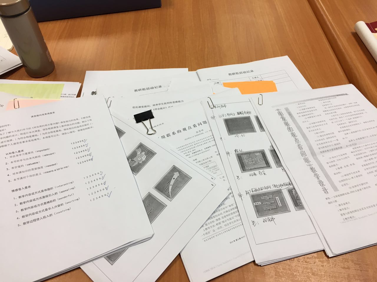 活动中,王静老师就她负责的课题《思想政治课卷入式设问研究》向老师们展示了上学期丰厚的资料的积累:资料涉及学生的调查报告、参考资料、阶段成果论文、围绕课题的公开课有针对的修改资料等,课题开展贴近实际,不断丰富深化。同时地理组吴晓明老师就他负责的课题课题《高中地理不同学段学科核心素养研究解读及教学案列研究》跟老师们一起讨论了关于核心素养的相关话题,历史组李连秋老师就她负责的课题《高中历史教学中运用思维导图的深度学习研究》提出本学期主要完成针对老师、学生的调查问卷进一步开展课题活动。