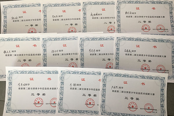 经过赛前集训,同学们取得了优异的成绩!其中2名同学荣获一等奖,3名同学荣获二等奖,6名同学荣获三等奖。尹小楠老师、高胜敏老师获得优秀辅导教师奖。