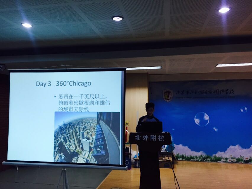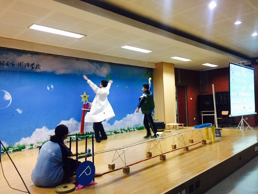 与以往学生大会不同的是,本次大会以年级数学尺规作图大赛颁奖拉开帷幕。其次,初二年级科技活动OM比赛的两支劲旅为我们展示了他们的作品。OM集手工制作、科技原理和表 演为一体,构思巧妙,形式多样。第一支队伍由六人组成,表演了“有本事来抓我们”。此队的特点在于他们用3辆小车模拟车内驾驶员进行表演。第二支队伍由7人组成,进行了纸承重表演。纸桥是由1张普通的15克白纸制成,共承重75千克的杠铃片,同时它也是情节完整的短剧。观看的学生和老师们纷纷表示出惊讶和赞叹,以及对他们两支队伍的鼓励与祝福。他们将于本周五出发去上海参加全国比赛。接下来是由初二(1)班的卫鑫、吴旭翔两位同学和大家分享了他们寒假远赴芝加哥姐妹校的游学生活。展示结束后,年级主任张霞老师就开学以来年级存在的问题如开窗通风、节能环保、午餐和晚自习纪律等提出了具体要求和详实布置。许祥校长也就新学期德育活动方面给予同学们充分的支持,同时,他对本次听会纪律提出表扬,并期望同学们下次能做得更好。