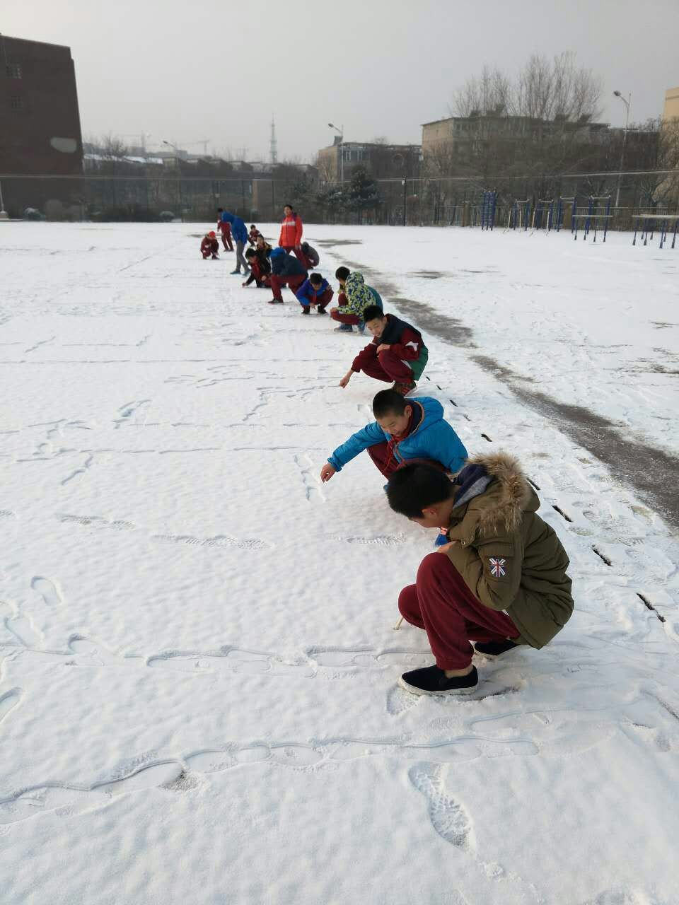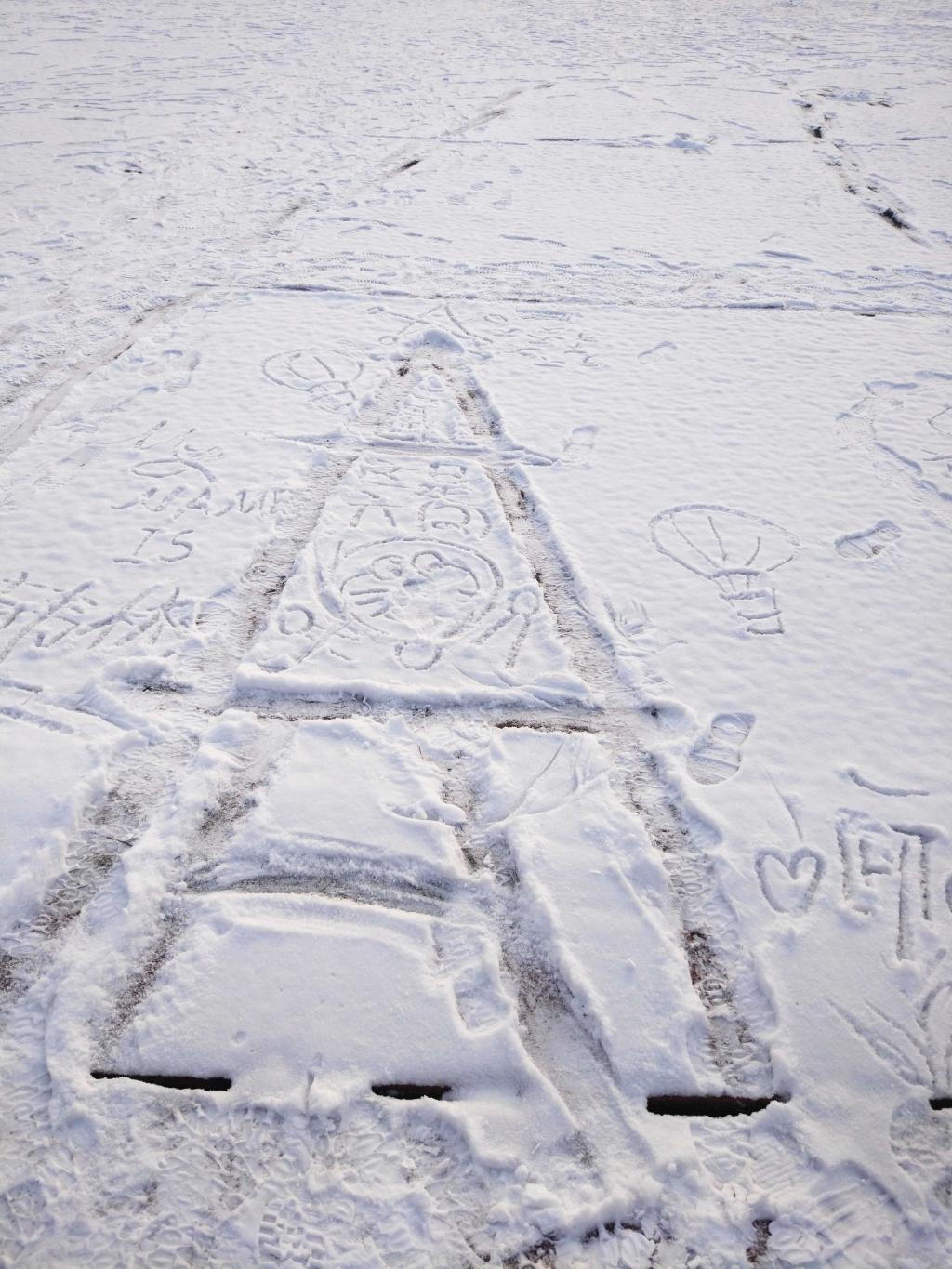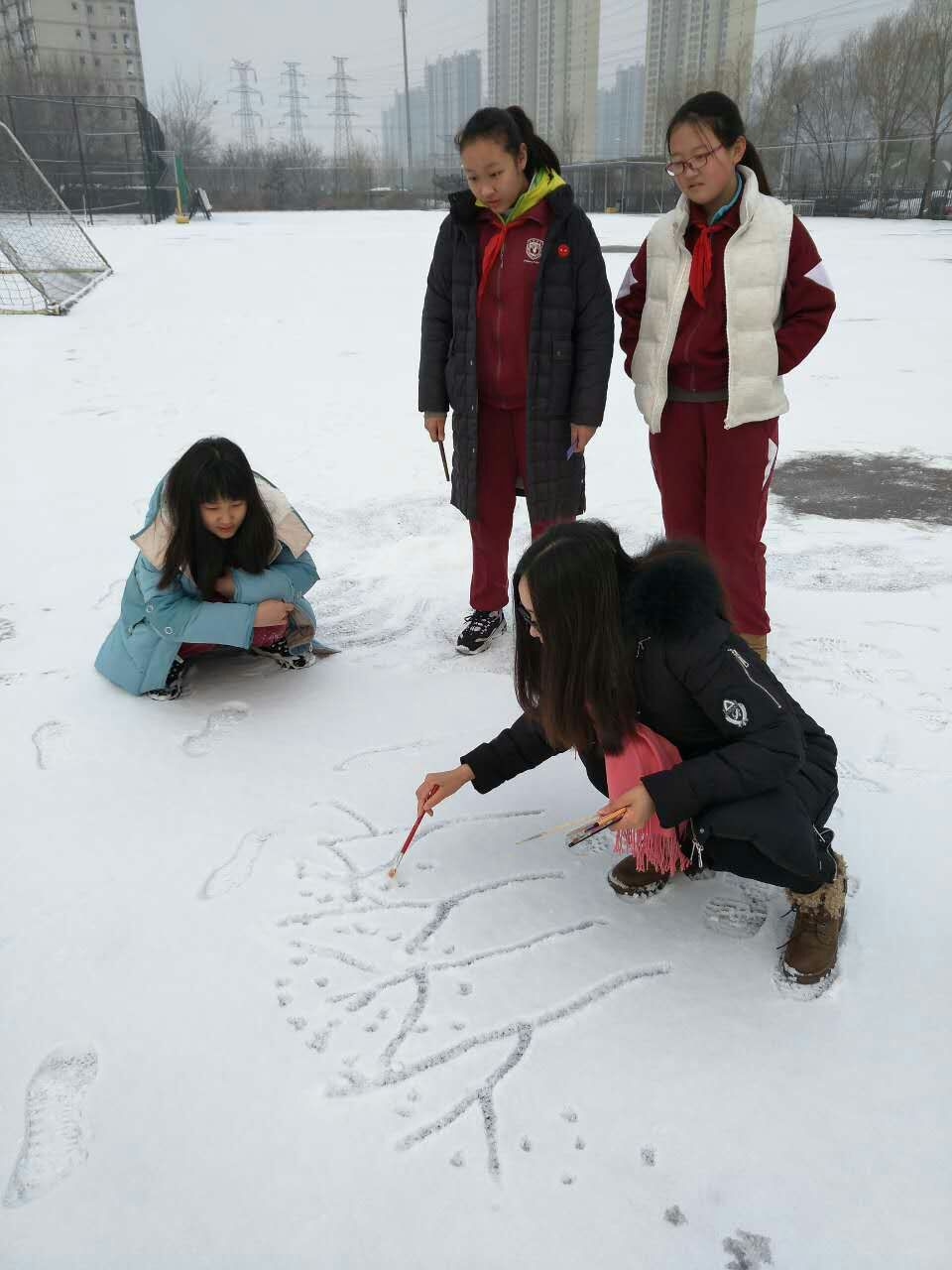 2月22日,一场春雪把我校校园装点的雪意盎然、如梦如画。我校小学美术组教师利用雪作为教育资源,在美术课堂开展了以雪作画的美术艺术实践活动。由美术组教师引导学生观察雪、感受雪、认识雪,并以雪为媒材进行有关的美术创作。课前美术老师告知学生相关的安全注意事项,提醒孩子们穿好外套,戴好手套。在美术老师的带领下,学生们排着队兴奋的来到操场中,在雪地里搜集积雪,用手和脚以及各种工具积极创作,十分投入。创作完成后大家一起参与了评比,选出了优秀作品。孩子们度过了这样一节充实且有意义的美术课。