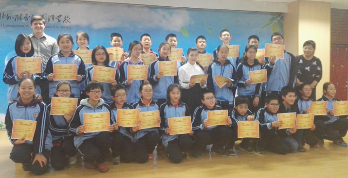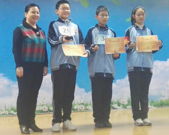 经过近一个多小时的激烈竞争,决出了年级的前三名。来自初一(5)班的陶然夺得本次拼字比赛的冠军,而来自初一(6)班的沈睿和初一(6)班的孟文萱分别获得亚军和季军。