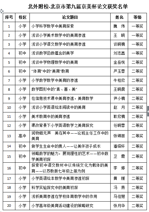 我校教师在“北京市第九届京美杯论文评比”活动中取得佳绩