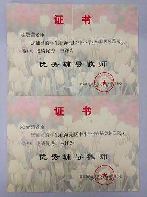 2016年12月,我校初中学生参加了“北京市海淀区头脑奥林匹克”比赛。