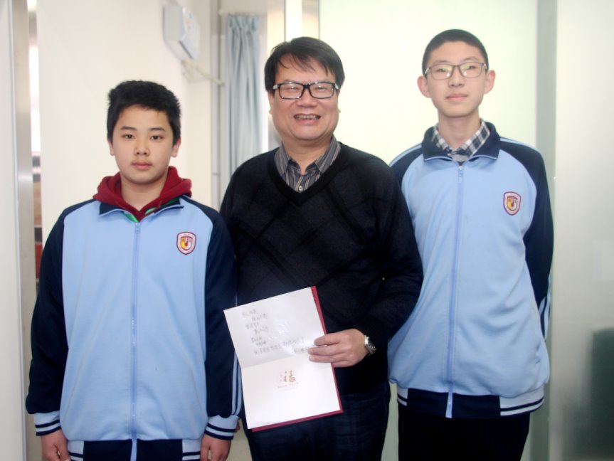 初一(5)班全体学生将亲手写的贺卡和祝福送到了校长和每一位老师手里。