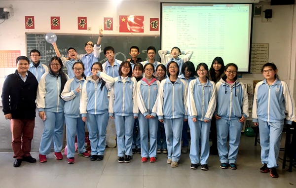 年级组主任李老师带领全年级教师到各班向同学们庆贺新年,并殷切地期望同学们能仰望星空、脚踏实地,为自己的理想一步一步踏踏实实地努力。