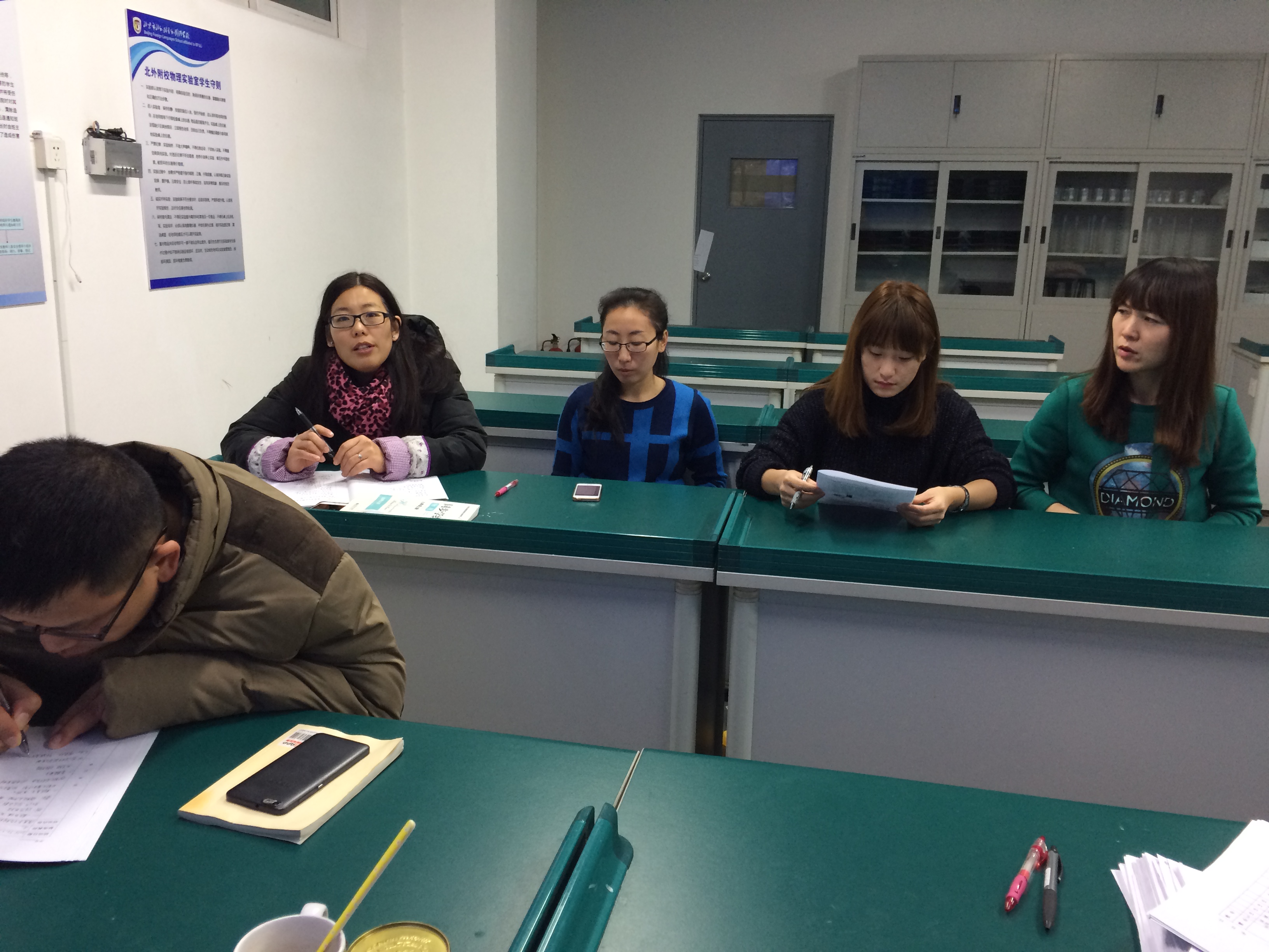 在交流阶段,初二物理备课组长常香然老师交流了初二的期末复习计划,根据初二物理教材内容的特点,实行章节复习,且根据学生的学习情况把重点放在了光学复习以及质量密度的测量两个方面。教研组长李宇晔老师则根据初三年级的特点说了下初三年级的复习安排,主要是以专题的形式,根据深度学习特点,实现一题多练等教学方法,并根据学生的具体学习情况,数学方面的基础等,实现哪些需要细讲,哪些结合数学知识讲解。
