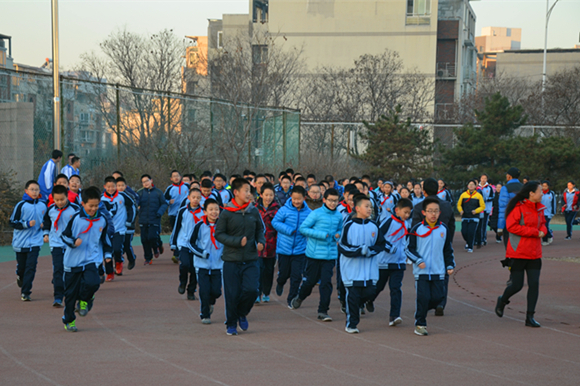 副校长副书记高雁鸣宣布2016-2017学年阳光体育冬季长跑活动启动。田卫老师组织师生做好准备活动后,鸣响发令枪,教师方队、各班级方队依次出发,拉开了今年冬季长跑活动的序幕。