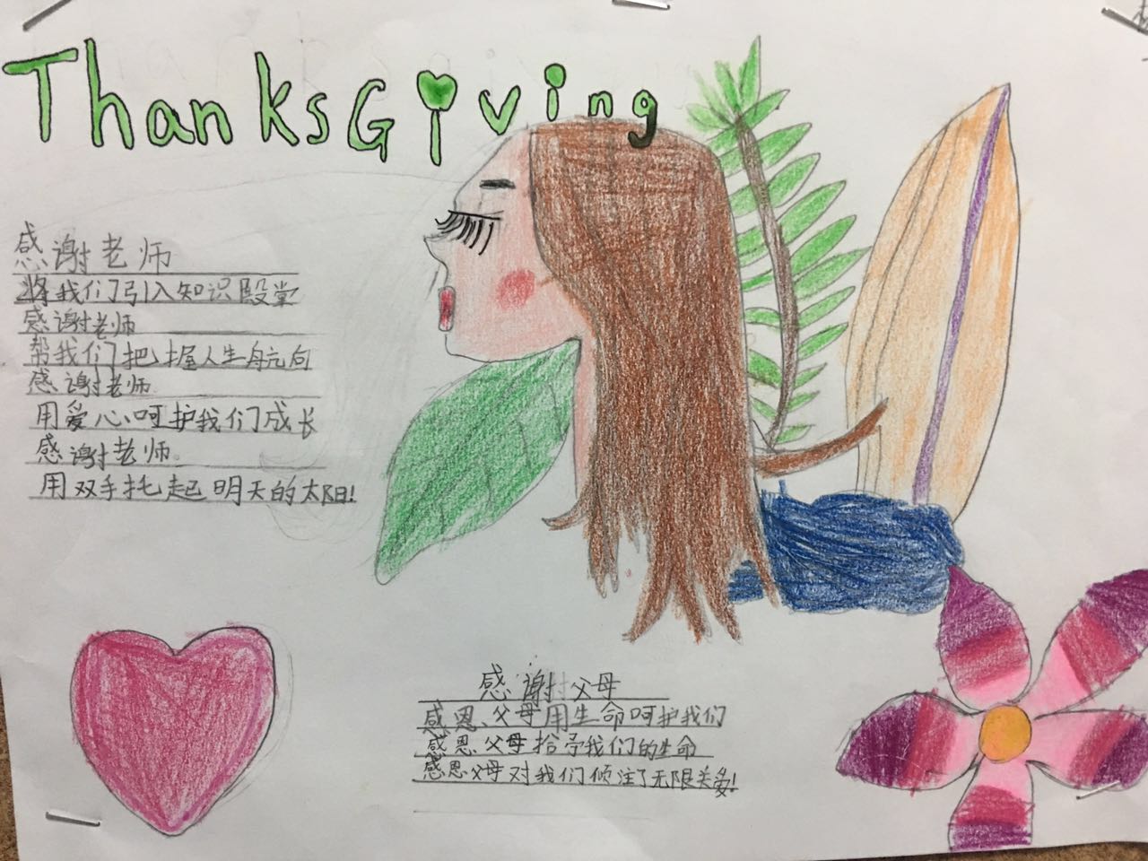 英语课上学生们不仅了解了西方感恩节文化,还学习了英文歌曲Five Little Turkeys、Thanks-giving Day,并制作了感恩贺卡。这些活动虽说只是表达情感的一种形式,是可以结束的,但同学们的感恩之心都将会被唤醒,感恩之行也将一直延续下去。只要你愿意,每一天都可以是感恩节!