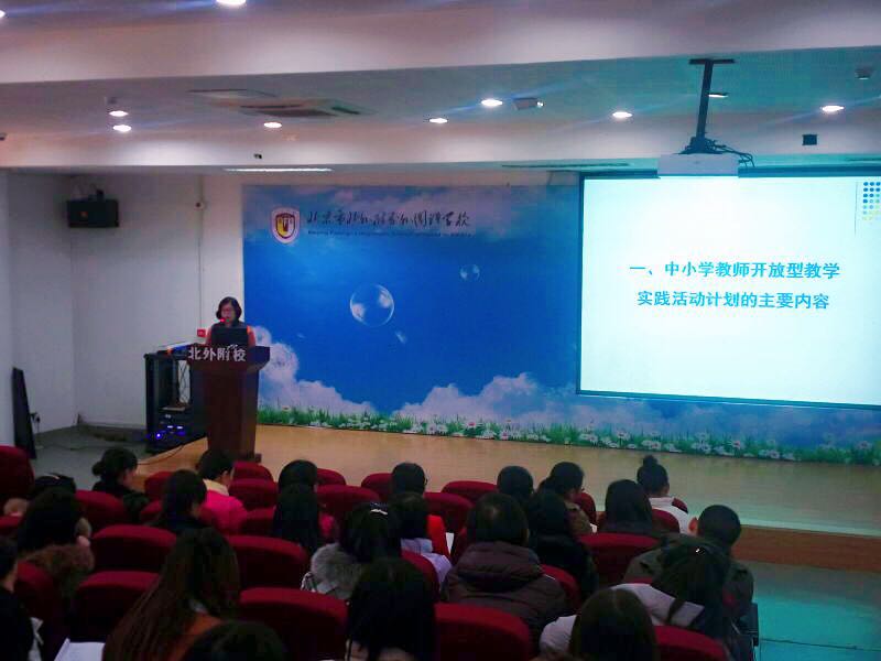 市级教师培训主要围绕北京市中小学教师开放型教学实践活动为主题开展。实施中小学教师开放型教学实践活动计划主要是为了目的是共享优质师资,促进义务教育均衡以及解决传统教师研修存在的一些问题,如研修课程设计、内容选择相对滞后,针对性不强;研修方式以单一面授为主,缺少互动交流,教师缺乏对研修项目的自主选择性等。开放型教学实践活动计划面向本市义务教育阶段全体教师实施,授课教师限定在一线承担教学任务或开展研修工作的1600余名市级以上骨干教师,包括正高级教师、特级教师、市级学科教学带头人和市级骨干教师,而选课教师则涵盖全市义务教育阶段学校和教师研修机构的一线教师和研修员。据介绍,开放型教学实践活动计划以信息化平台为依托,授课教师通过“北京市中小学教师开放型教学实践活动管理服务平台”发布培训项目,经审核后,选课教师利用PC或手机端进行自主选课、发布活动评价,这保障了课程学习的秩序提高了教师培训的学习效果。杨老师还为每一位教师细致讲解了平台系统的登录,选课的步骤方法以及需要注意的一些事项。