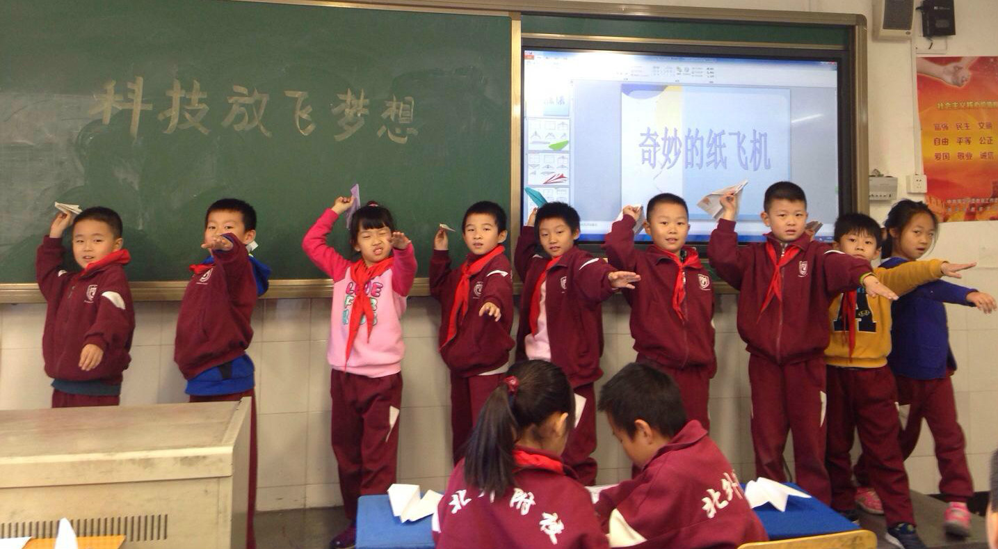 为丰富校园文化生活,增加学生对飞机相关知识的了解,培养学生学科学、爱科学以及运用科学的兴趣。北外附校小学部科技月活动期间,小学二年级部各班级举行了“纸飞机制作与放飞”活动。